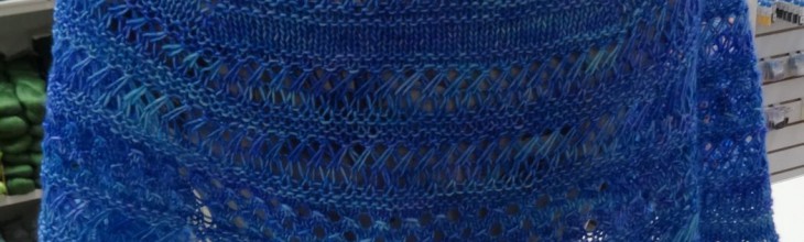 Loopy April Celebrations color – We named this color “Finally, Spring!”, because we were all pretty tired of the snow and cold when we were planning for this. (Can you relate?) Dyed up on Dream in Colors new Jilly yarn base, this 100% merino single-ply fingering weight yarn comes with 440 yards in the skein. We mixed the colors of lilacs and the colors of Blue Columbines (our state flower) and the result is stunning. A true Spring Celebration! Here’s the colorway, along with the Saturn’s Rings Shawl that I knit up with a skein of it.