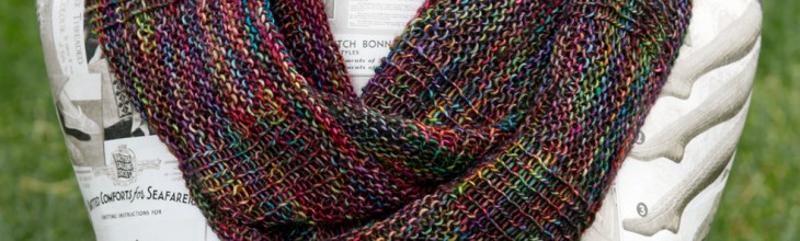 The Loopy Ewe September Celebrations colorway – Big Box of Crayons. We’re celebrating the beginning of the school year with this color. When you were growing up, didn’t you always want the BIG box of crayons, when you were buying school supplies? (For me, it was the 64 count box with the sharpener in the back.) We asked Dream in Color to design a colorway that combined the best crayon colors, and they rose to the challenge. I used a skein to knit up this Emita pattern, which combines garter stitch and ribbing into a simple infinity cowl pattern. (And the Loopy Elves will hate me for saying this, because they are the ones who have to match skeins when you buy multiples, but I also think this would be gorgeous in the Boxy pattern.)