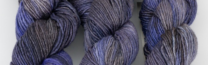 Malabrigo Silky Merino – A DK weight yarn with 150 yards in the skein, this one is always popular for shawls, scarves, and wraps. Shown here in Candombe and Lavanda.