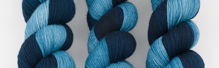 Twin – This fingering weight yarn is 80% Superwash Merino and 20% Nylon with 510 yards to the skein. It’s great for socks, scarves, shawls, cowls and hats. Shown below in O Rh Negative and Am Kalten Polar.
