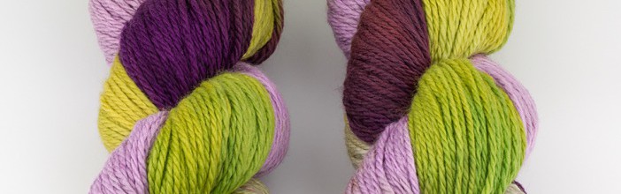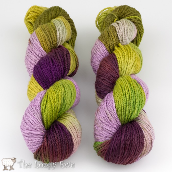 Lorna’s Laces Shepherd Worsted – Beautifully dyed by Beth and the team at Lorna’s Laces in Chicago, this worsted weight yarn is 100% superwash merino and comes with 225 yards to the skein. It has been popular for sweaters, scarves, hats, cowls, mittens and more. Pattern ideas: Baby Chalice Blanket, Just Enough Ruffles, and Purl Ridge Scarf. Shown below in Jeans and Meadow Wildflower.