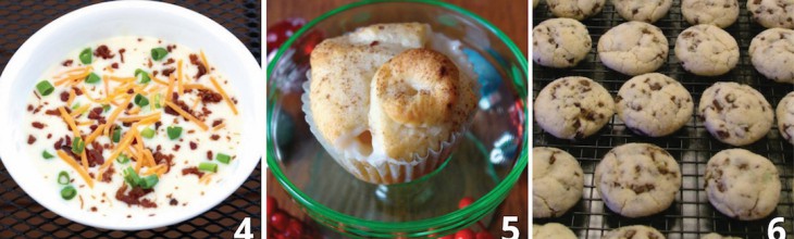 I want to try them all! I think we’ll be having pizza casserole tomorrow night, the pasta salad with hamburgers on the grill on Friday, I’ll make some of the cookies on Saturday, and the potato soup on Sunday when it’s supposed to snow. Thanks so much to you and the elves for sharing these delicious recipes; I like new things to cook almost as much as new yarn!