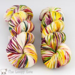 Into the Whirled Resist Dyed Meridian Sock – More beauties from Cris and James on their beautiful Meridian Sock base. The Resist Dyed method means you get fun speckles and pops of color all mixed up in the skein, which means a finished project full of beauty. Although the base is call Meridian Sock, it does also knit up beautifully into scarves, shawls, hats, and cowls, too.