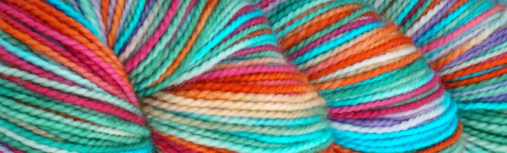 Western Sky Knits Aspen Sock with Nylon. Kimberly has loaded us up with more of her beautiful colors, including quite a few new colorways this time. It’s great for socks (as the name suggests), but I used one of mine to make a Sockhead Slouch Hat. Also beautiful done up in shawls, cowls and scarves. (Try the Favorite Ever Scarf pattern with it.)