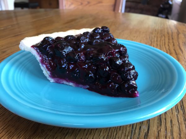 Have you shopped for blueberries lately? I made the pie below this week, and there were the biggest blueberries I’ve ever seen in the stores around here. I’ve always loved blueberries. I remember picking blueberries in Paw Paw, Michigan when I was little. (Paw Paw is apparently the heart of grape and wine country in Michigan. And they have good blueberries.)