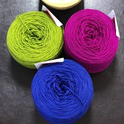 This time I am contemplating doing three colors with Wollmeise Blend. Blue on the lace, then … not sure. I could do blue/green stripes with a thin pink stripe pop in there. Or blue/pink stripes with a pop of green. Or pink/green stripes with a mini pop of blue. What do you think? I can’t make up my mind. I do want it to be colorful on my black winter coat! (I think it’s safe to say it will be colorful.)
