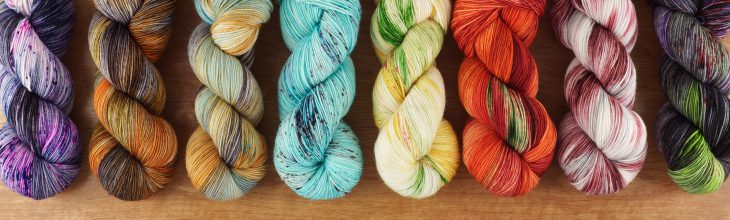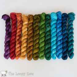 Dream in Color Mini Skein Sets & August Popup Up – re-stocks on those beautiful sets that were dyed up for the Crown Wools MKAL, (Fall Rainbow, shown below, and Spring Flowers), but that people are also snatching up for a whole variety of other patterns, too. (How about: Mini Solutions Scarf, Mighty Mini, Mini Mazy, and Mini Skein Madness. ) We also have the August Dream in Color Pop Up Skein Club colorway for you.