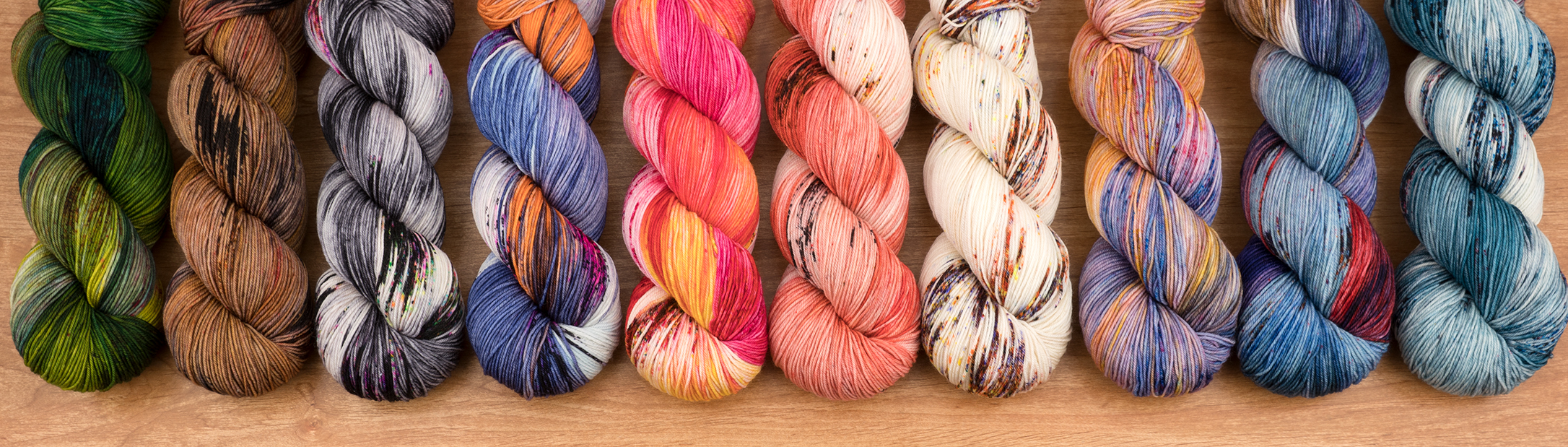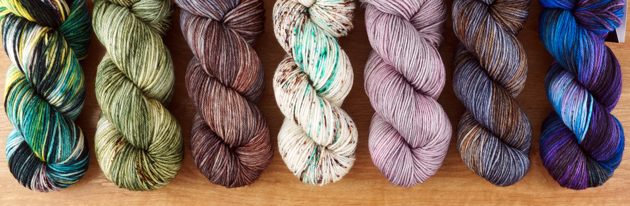 Savvy Skeins – Indie dyer Ali comes up with gorgeous colors in her dye studio. This batch is on her Sensible Sock base, which is 80% Superwash Merino and 20% Nylon.