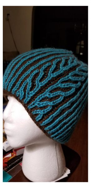 I knit a Cold Brew Hat this year and it was so fun to pick colors, and work up. The pattern changes often enough that you never get bored. I also made matching mitts, and then made three Cold Brew Cowls. I really did enjoy working on those patterns!