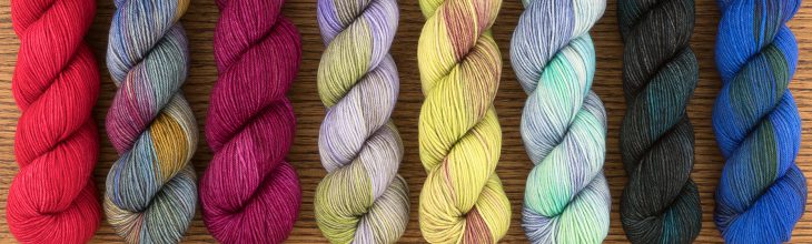 JulieSpins Half Pints – These smaller skeins are great for mixing and matching in projects, for heels and toes when matching to full skeins, and for knitting socks and having the skein already divided into two for you! Each skein is fingering weight with 230 yards to the skein in a 75% Superwash Merino/25% Nylon base.