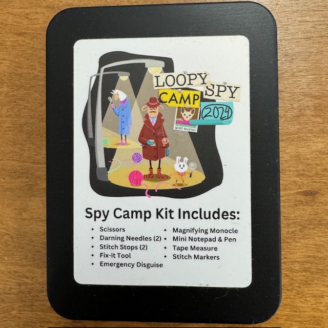 - A limited number of Loopy Spy Camp Kit Tins are available this year! These fun notion tins house all your Special Yarn Agent Essentials – stitch markers to scissors to magnifying monocle. . . and much more! You will want them for every project bag (and these are so stinking cute we may have to come up with a regular Loopy kit set).