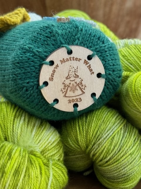 The past 2 years, we’ve included a wooden gnome base as the last goodie in the goodie set. There is no base in this year’s goodie set! We are instead offering the base as an extra for purchase! We’ve discovered that there are some of you out there who really want the base and not all the other extras. There are also those ambitious folks among you who knit more than one gnome, and want bases for them all! Additionally, we’ve got to keep you on your toes – you shouldn’t be able to guess that the last goodie is a gnome base! An order of the Gnome Base will include ONLY a 1.5″ wooden disc with this year’s gnome logo that can attach to your gnome bottom to stabilize it. Click here to order your Gnome Base. PLEASE NOTE – the image here is of last year’s gnome base! This year’s base will feature Gnana’s visit!